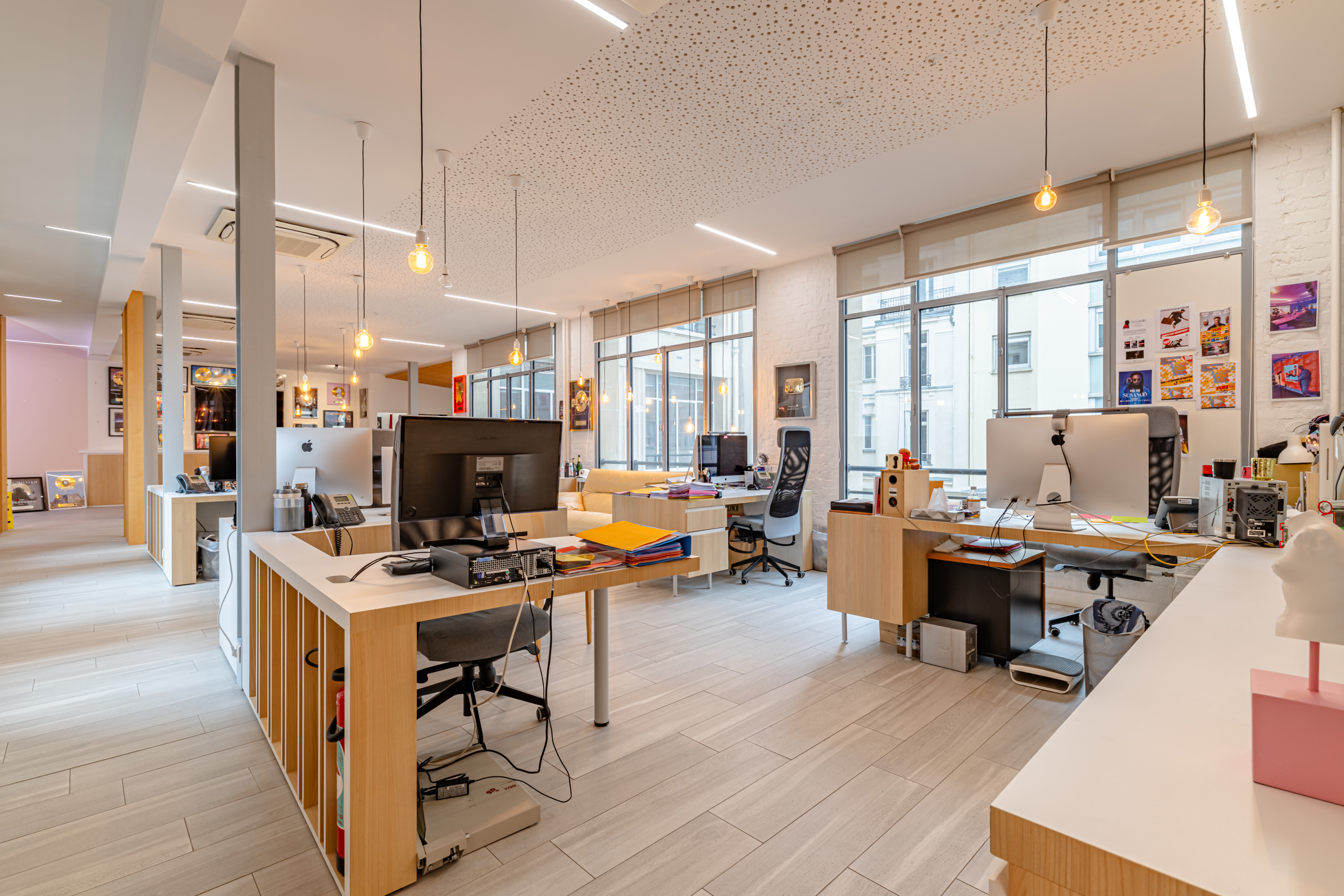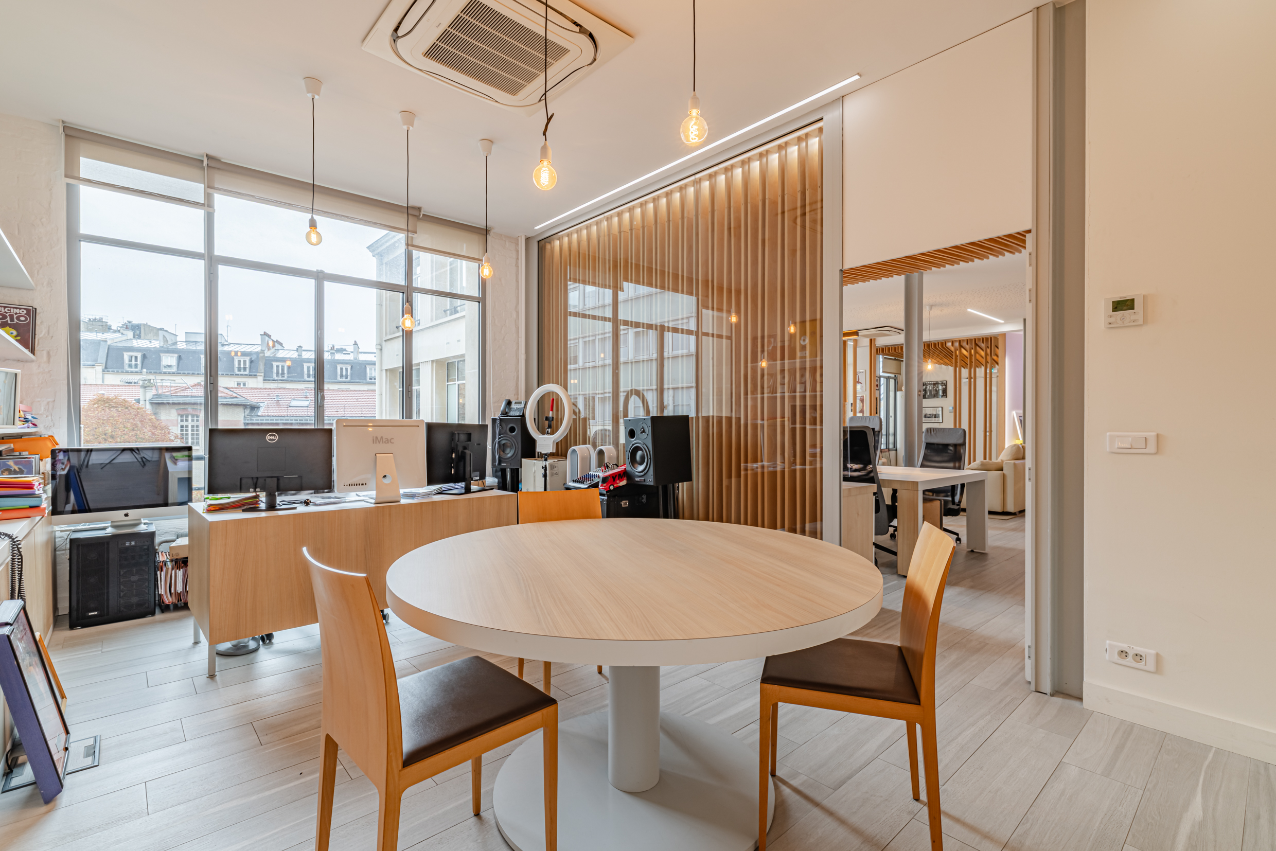 Ce bien comprend un vaste open-space lumineux de 170 m², un bureau de 25 m², une kitchenette équipée, des sanitaires, un local technique, de nombreux placards le tout étant vendu intégralement meublé (meubles et rangements fabriqués sur mesure), locaux climatisés et équipés de câblages informatiques et d’une armoire de baies de brassage.